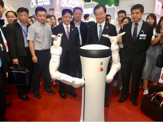 领导视察一维弦自主研发的机器人MoRo